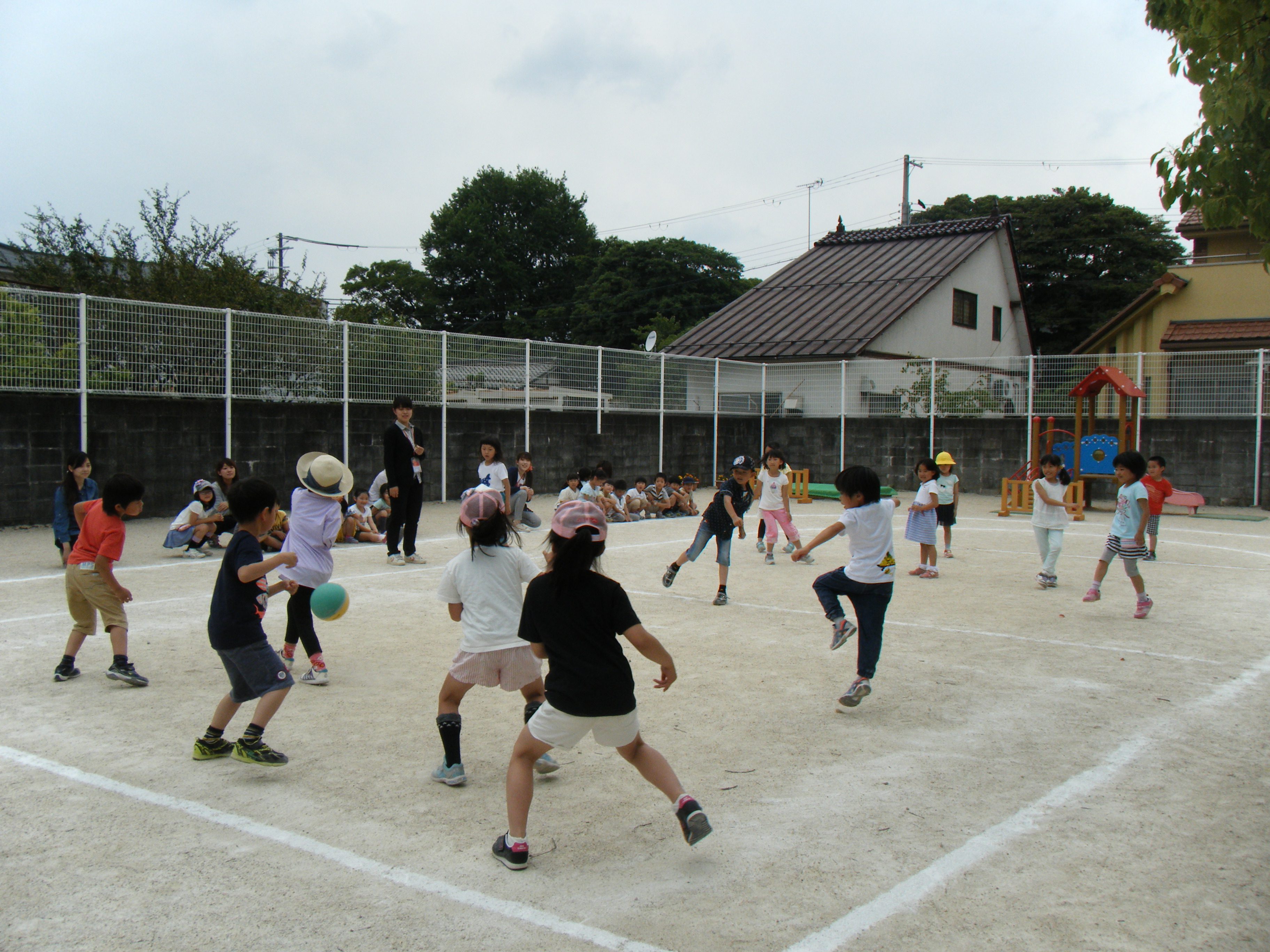 新1年生 同窓会(卒園アルバム渡し) 2016年06月9日 6月4日(土)、お昼から新1年生の同窓会を行いました。 初めに園庭で「レインボー体操」をして準備体操をしました。 各クラスでチームを組み、作戦会議を行った後、ドッジボール大会をしました。 ライオンさんの頃よりも、ボールの投げ方が力強くなっていました。 久しぶりにみんなに会えて嬉しかったです。 小学校でも、元気に頑張って下さい。 また幼稚園に遊びに来てね。待っています。 古い記事へ 一覧へ 新しい記事へ