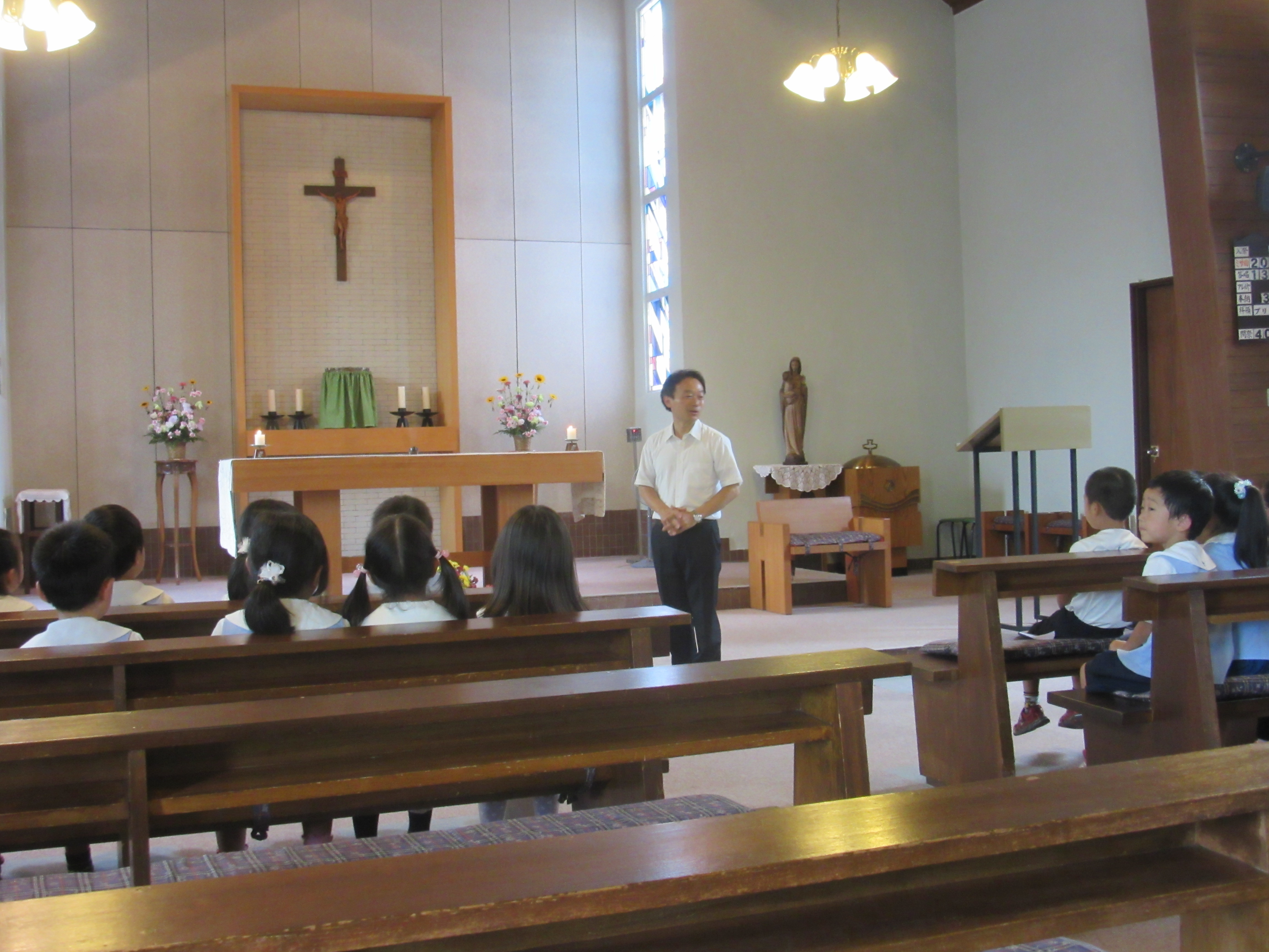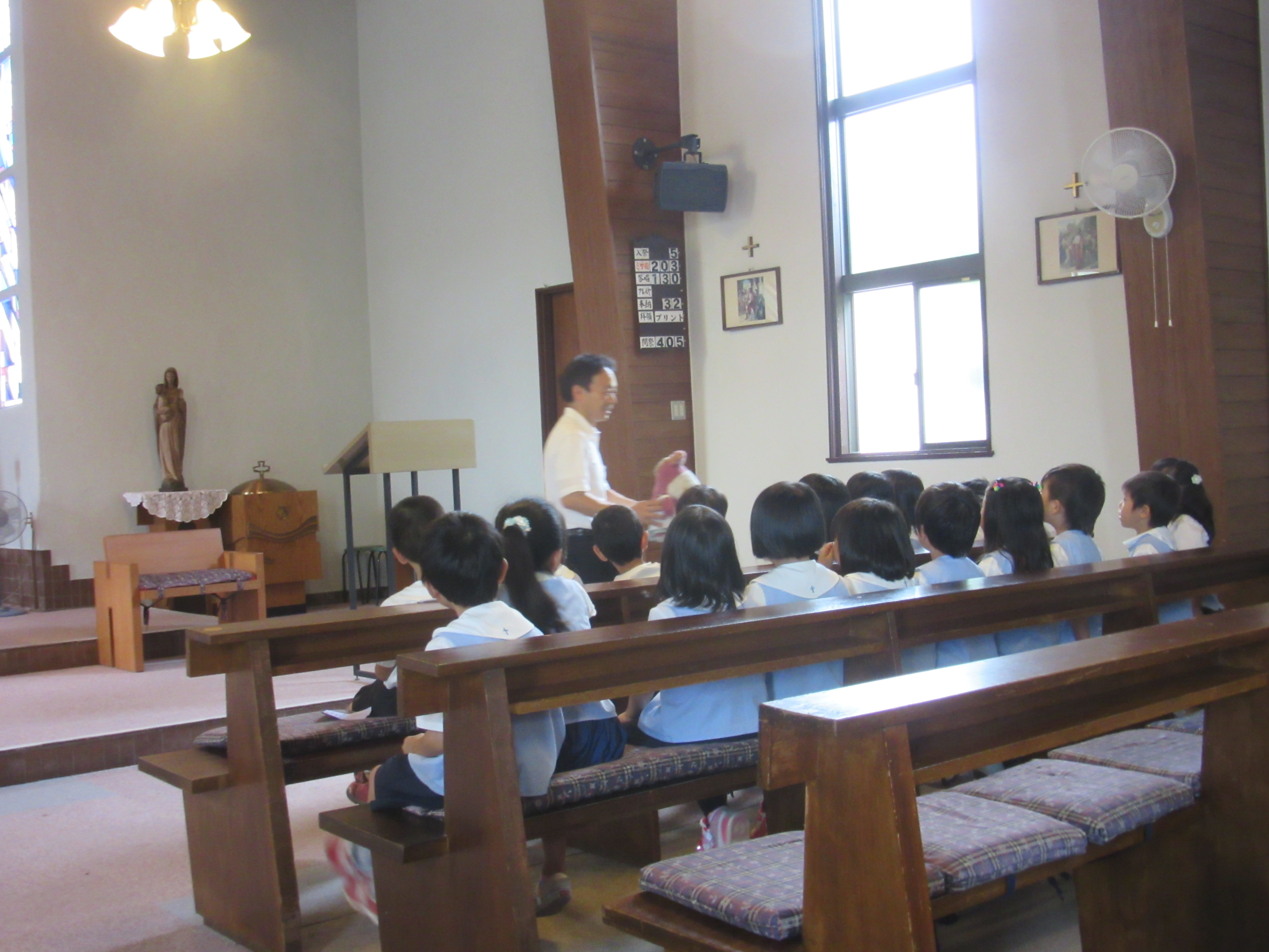 年長児教会訪問 2016年07月6日 7月6日(水) 教会で神父様に聖書にまつわるお話をして頂きました。 その後、お泊まり保育についてのお話を聞きました。 年長児で素敵な時間を過ごしたね。 古い記事へ 一覧へ 新しい記事へ