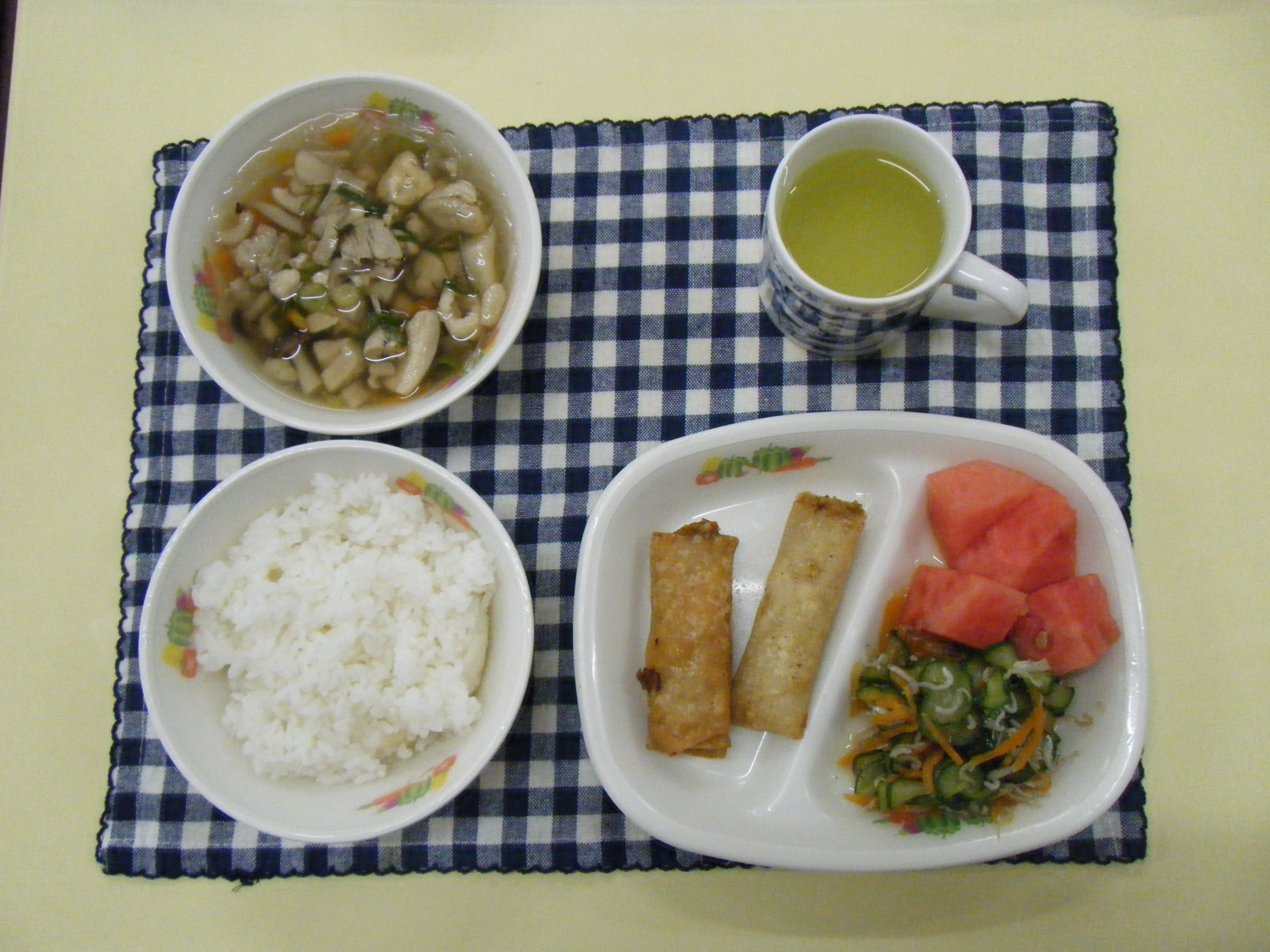 ごはん、ミエン・ガー(鶏肉と春雨のスープ)、